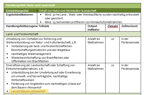 LEADER Handlungsfeld Natur und Landschaft